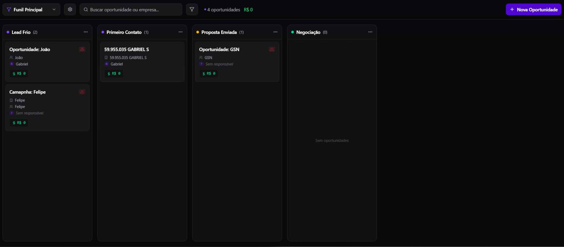 Do zero lead ao negócio fechado — tudo aqui dentro